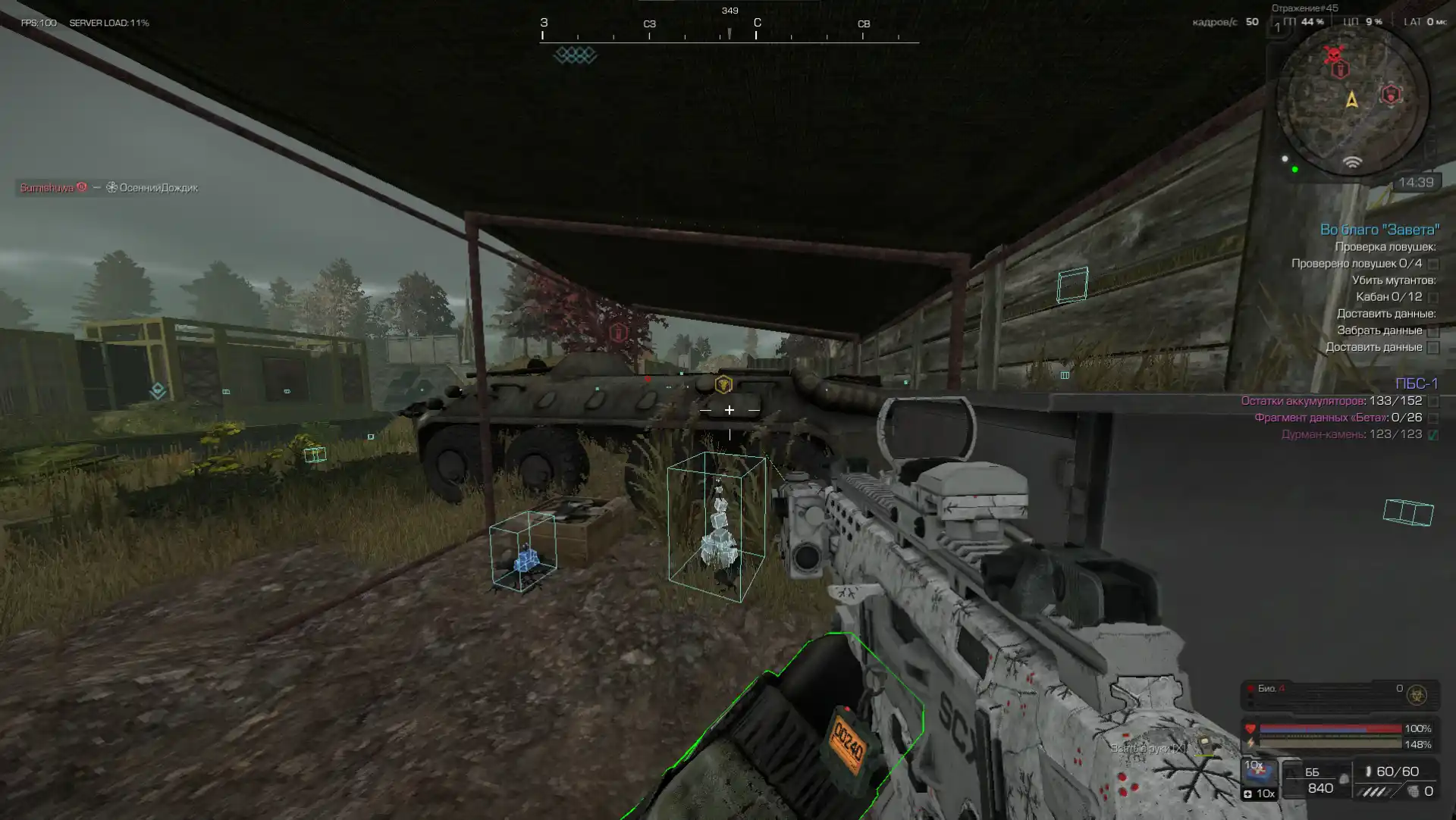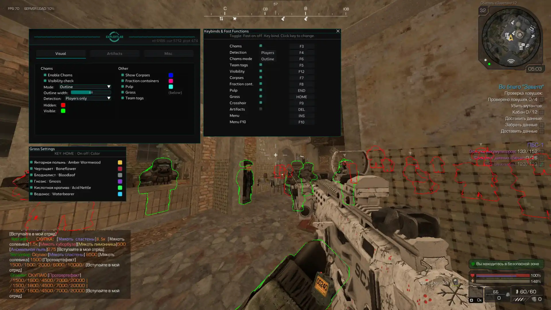 Full cheat for STALCRAFT: X with chams, Artifact ESP, Pulp, Grass, Visible Check and screen protection.