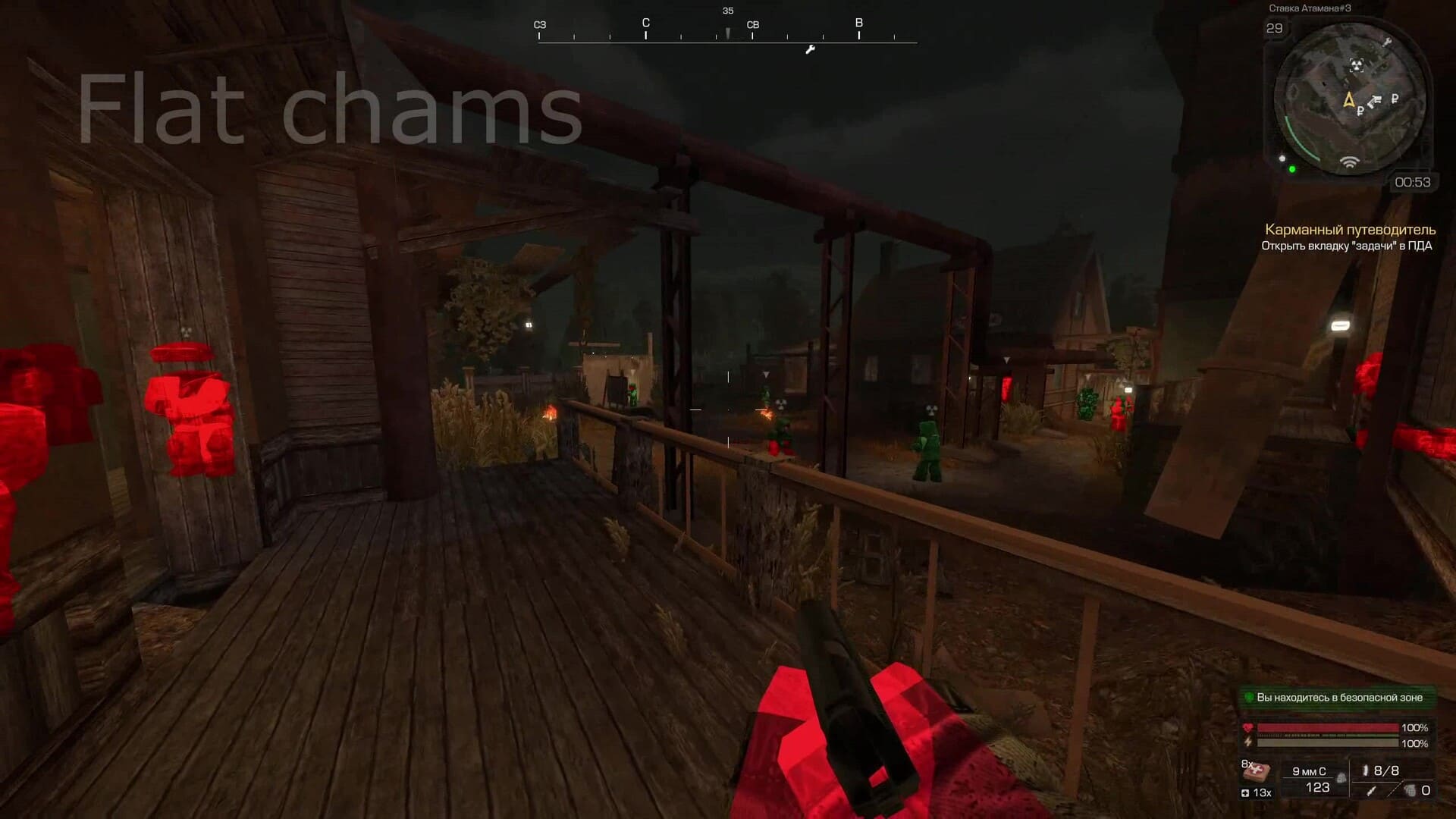 Чит с чамсами для STALCRAFT: X. Подсветка мобов и объектов разными типами чамсов — плоские, контурные, каркасные.